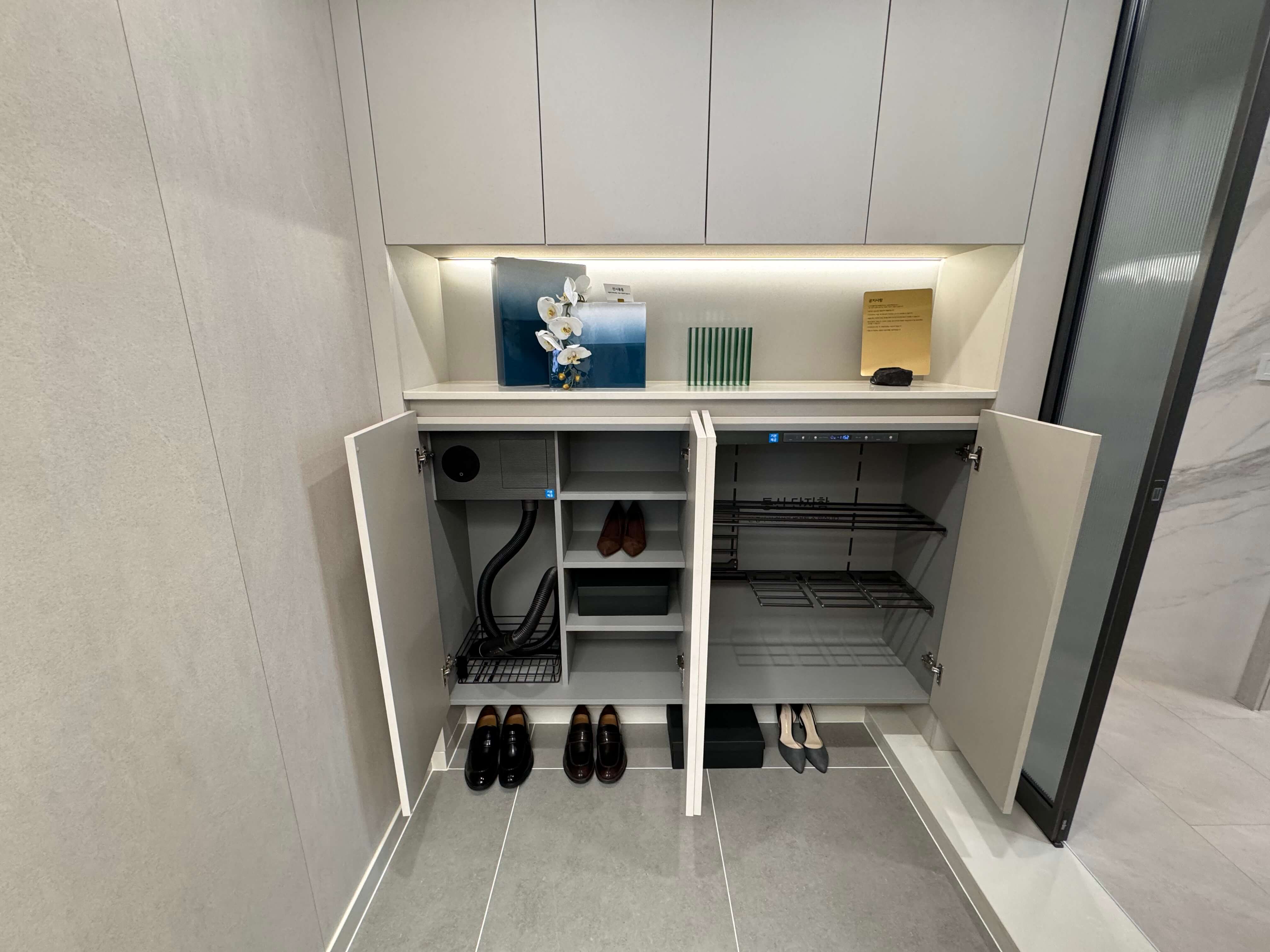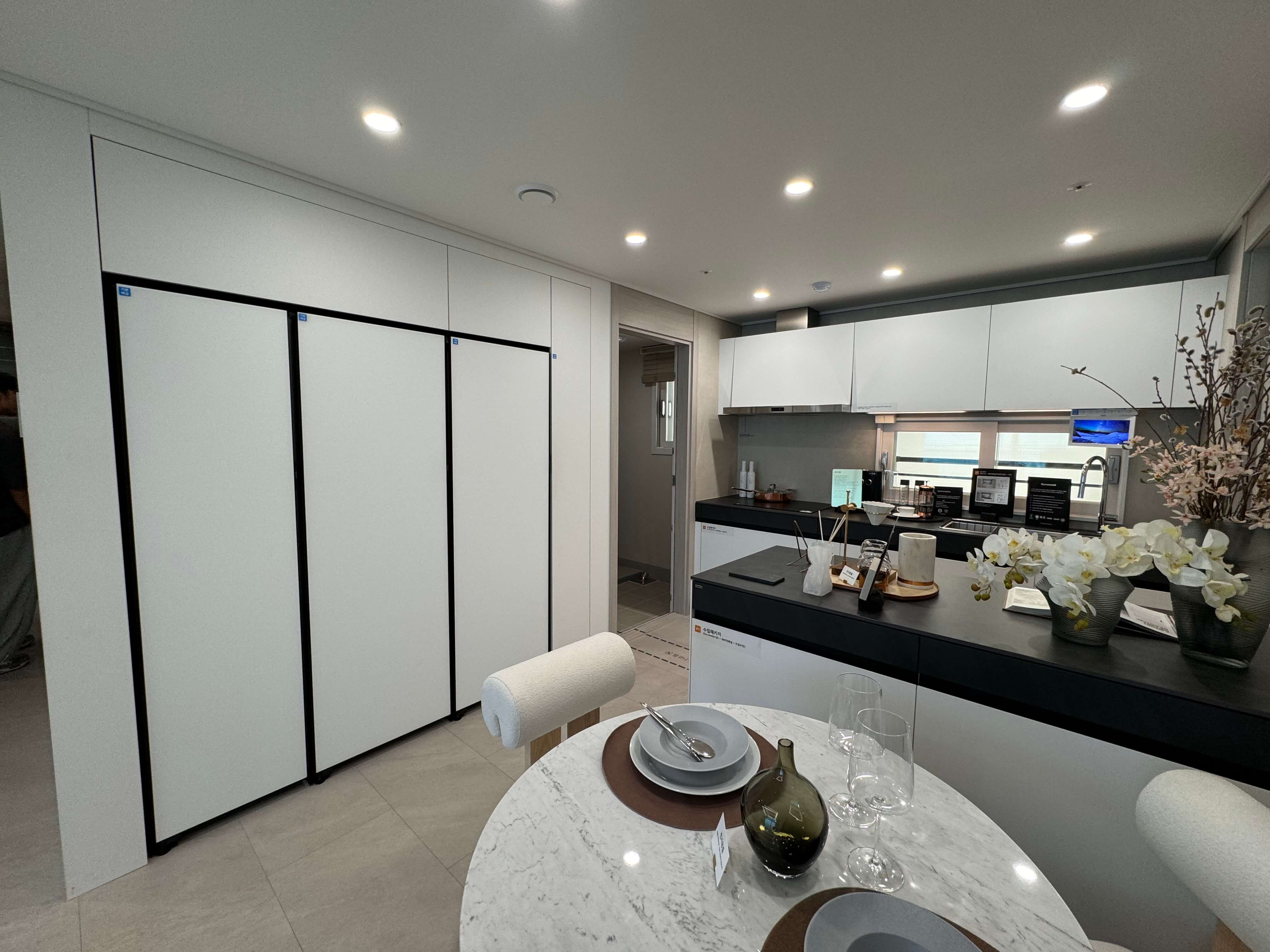 한편, B와 C타입은 탑상형 구조로 ㄱ자형 주방이 특징이며, 효율적인 동선과 모던한 느낌을 제공합니다. 특히 모든 세대에 이태리 명품 주방가구 유로모빌과 삼성 비스포크 가전, 히든 도어 인테리어 등이 무상으로 제공되며, 고급스러운 분위기를 자아내는 인테리어 요소를 사용해 실내 디자인의 품격을 높였습니다.