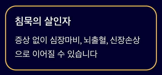 많은 분들이 “나는 혈압이 좀 높아도 괜찮겠지”라고 여기지만, 사실 그렇지 않습니다. 고혈압은 ‘침묵의 살인자’라 불릴 만큼 증상이 뚜렷하지 않으면서도 심장마비, 뇌출혈, 신장손상 등 치명적인 결과로 이어질 수 있습니다.
