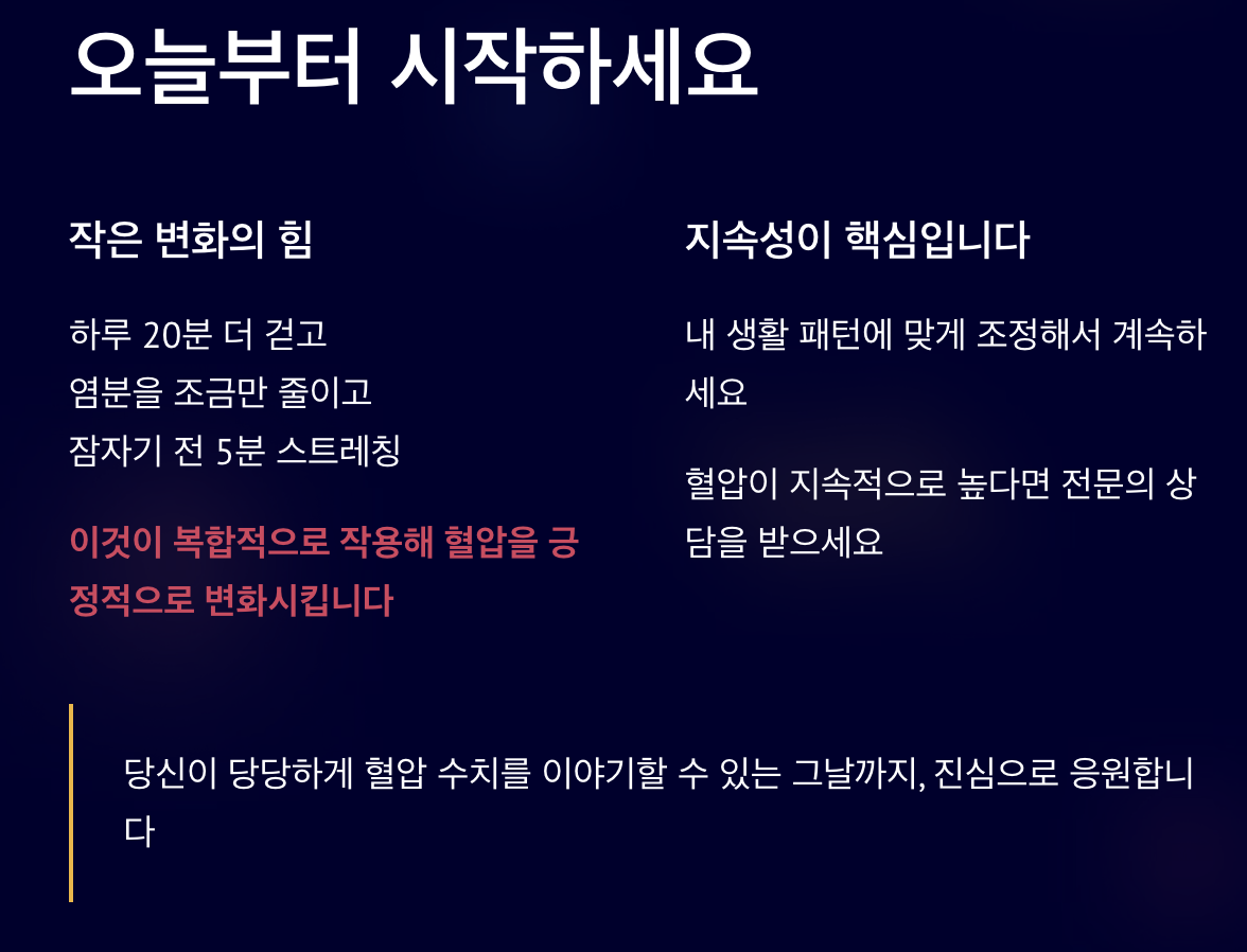 여러분의 건강한 내일을 진심으로 응원합니다. 당신이 당당하게 혈압 수치를 이야기할 수 있는 그날까지, 저도 함께 응원할게요.