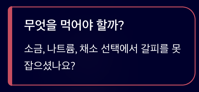 문제 2: 식사 때 소금, 나트륨, 채소 선택에서 갈피를 못 잡는다