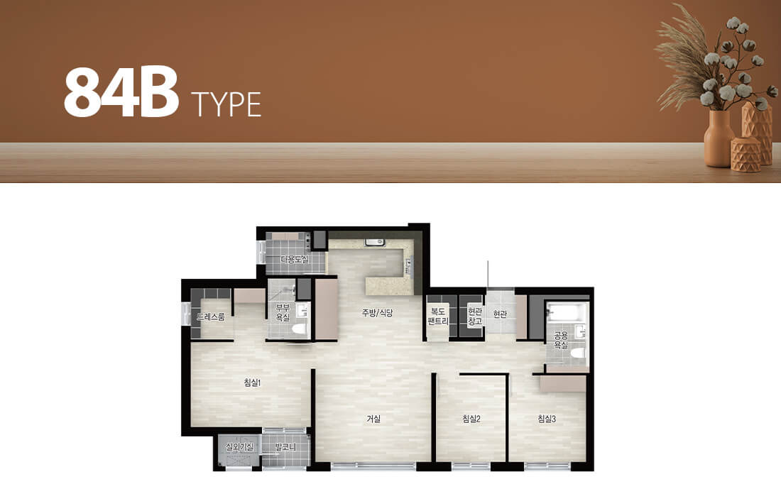 특히 최근 주택 시장의 핵심 키워드인 ‘수납력’과 ‘가사동선’이 세밀하게 반영되어 있어, 실제 거주자들이 체감하는 만족도가 높습니다.