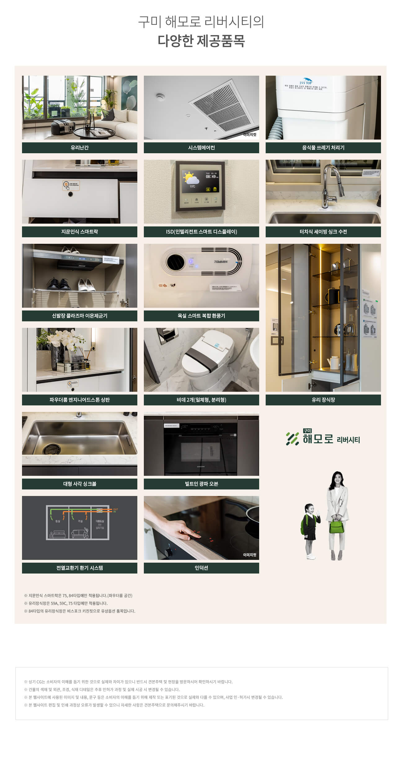 구미 해모로 리버시티는 기본 제공 품목만 보더라도 프리미엄 단지에 걸맞은 품질을 자랑합니다. 입주민의 생활 편의와 위생, 품격을 모두 갖춘 특화 품목이 기본으로 제공됩니다.