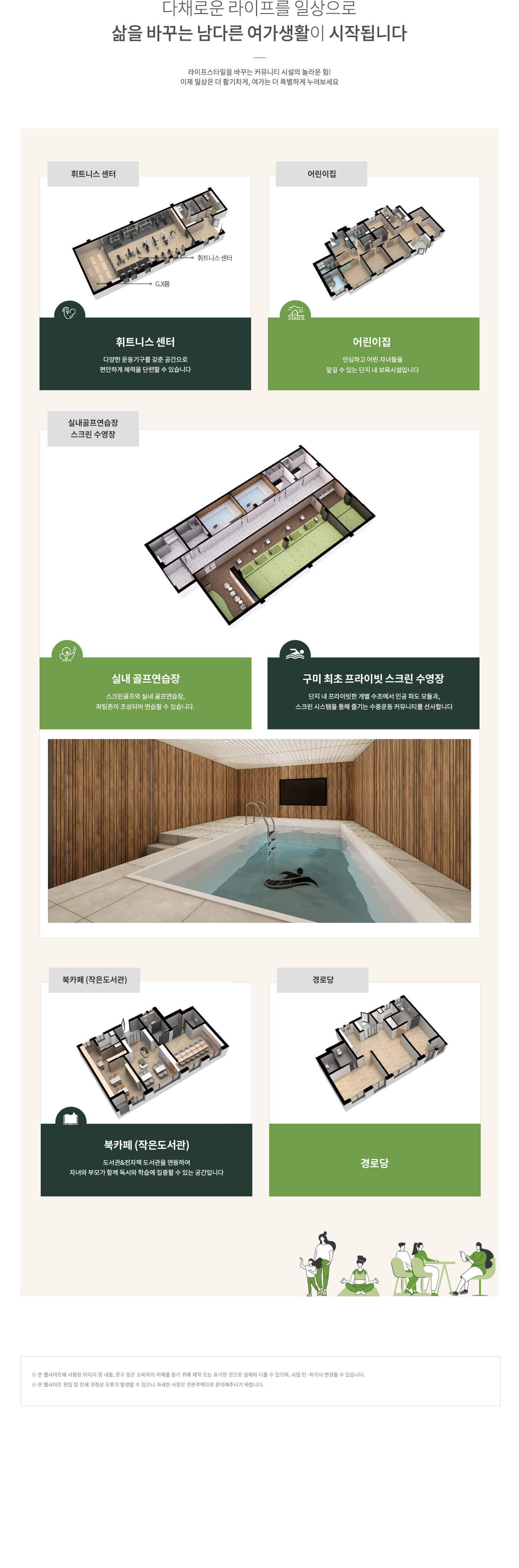 - 프라이빗 스크린 수영장(지역 최초), 피트니스센터