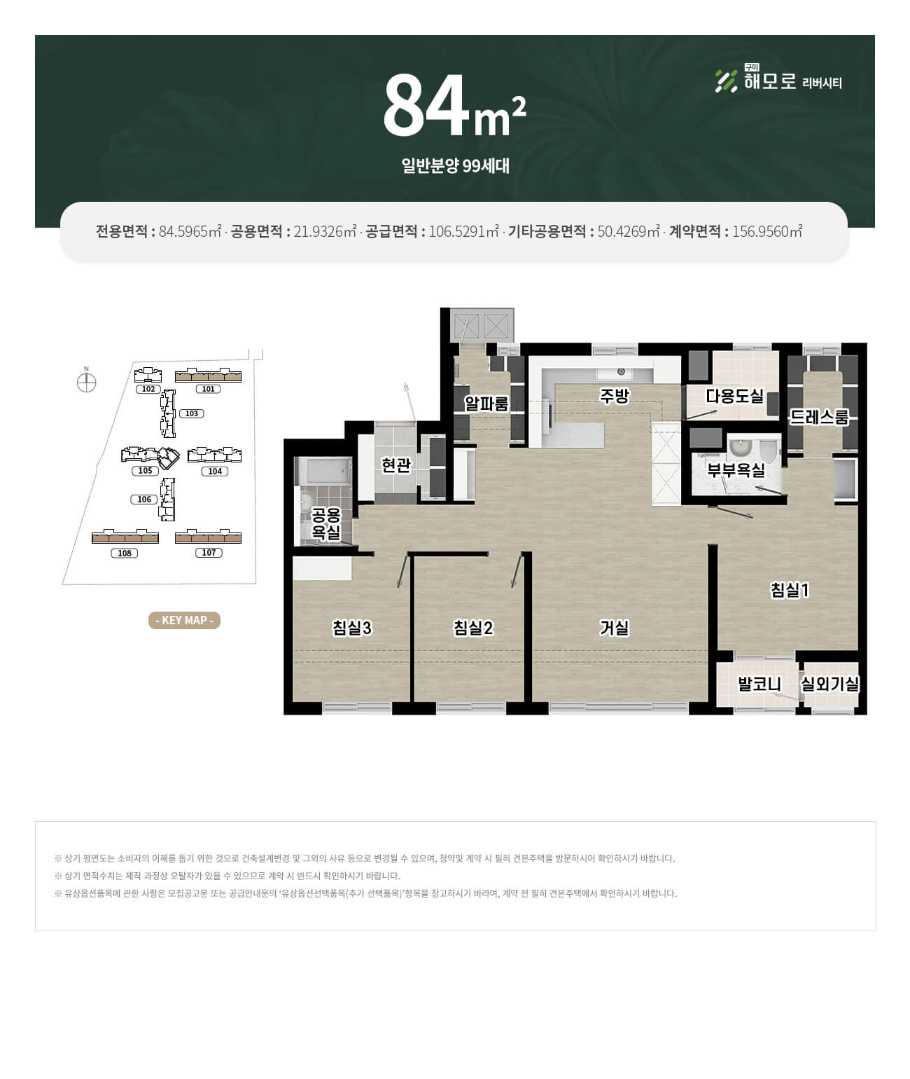 특히 84㎡ 타입은 가족 단위 수요자들에게 인기가 높으며, 채광과 통풍을 고려한 구조로 실거주에 최적화되어 있습니다.