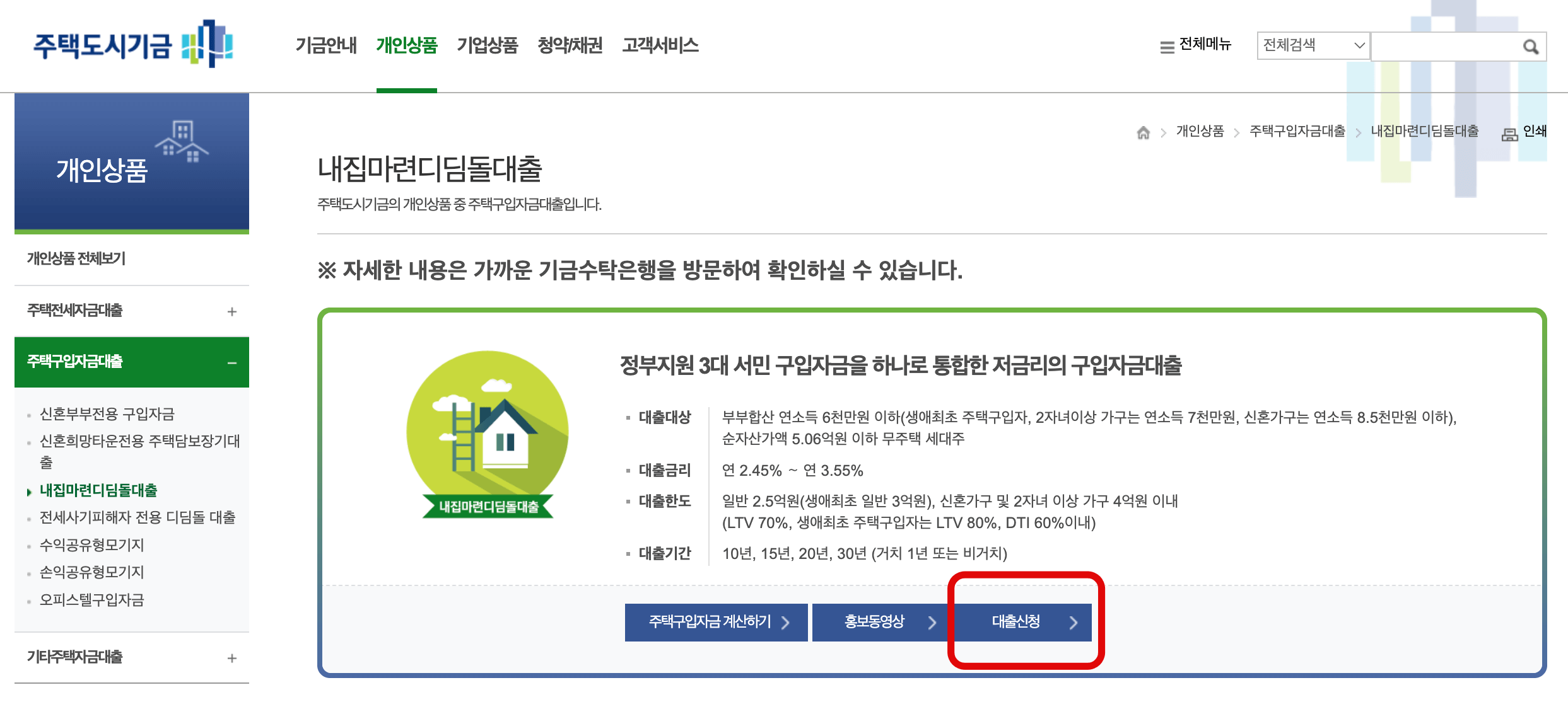 내집마련 디딤돌 대출 내용 : 무주택 서민에게 저금리의 구입자금을 대출해 드립니다.