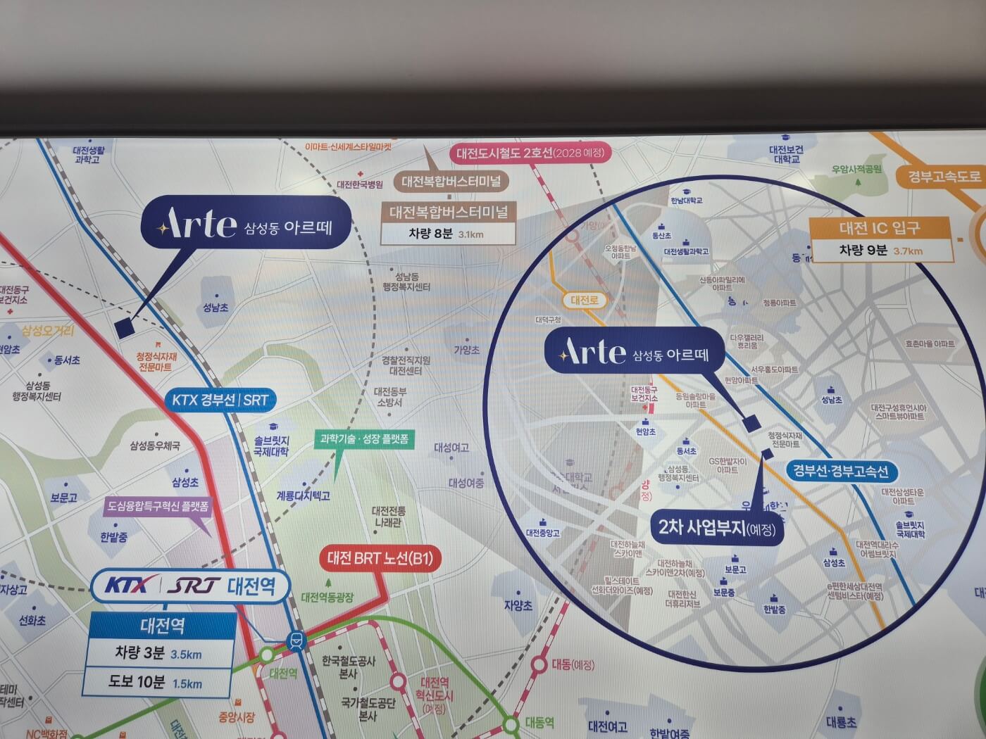 삼성동 아르떼 민간임대아파트는 대전역에서 1.4km 거리에 위치해 대중교통 접근성이 뛰어납니다. 또한, KTX와 BRT 환승센터가 예정되어 있으며, 대전 도시철도 2호선이 2028년 개통 예정으로 향후 교통 여건이 더욱 개선될 것입니다. 판암 IC와 대전 IC를 통해 주요 고속도로로의 접근도 용이하여 출퇴근이 수월합니다.