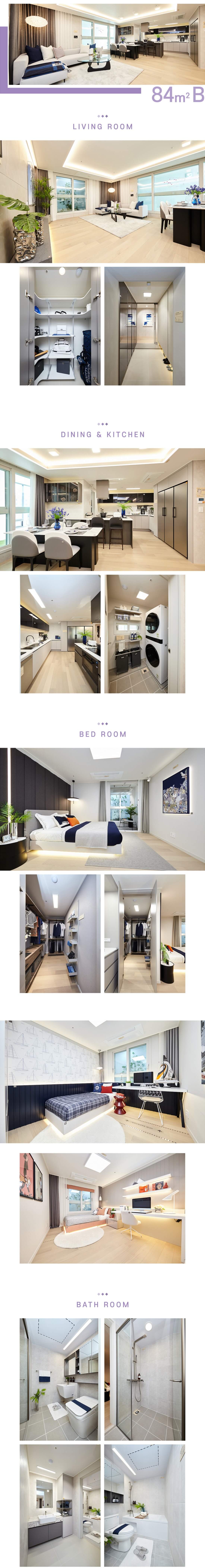 주차공간은 세대당 1.43대로 법정 기준을 초과하며, 입주민 편의성을 세심히 고려했습니다. 주택형은 전용 84㎡, 110㎡, 펜트하우스 등 중대형 평형 위주로 구성되어 다양한 라이프스타일을 수용합니다. 특히 84A 타입은 544세대로, 효율적인 4베이 판상형 구조를 통해 채광과 통풍이 탁월했습니다. 팬트리와 드레스룸 등 수납공간도 여유롭게 마련되어 생활 효율성을 높였으며, 110㎡ 타입은 타워형 구조로 알파룸을 갖추어 취미나 홈오피스 공간으로 활용이 가능합니다.