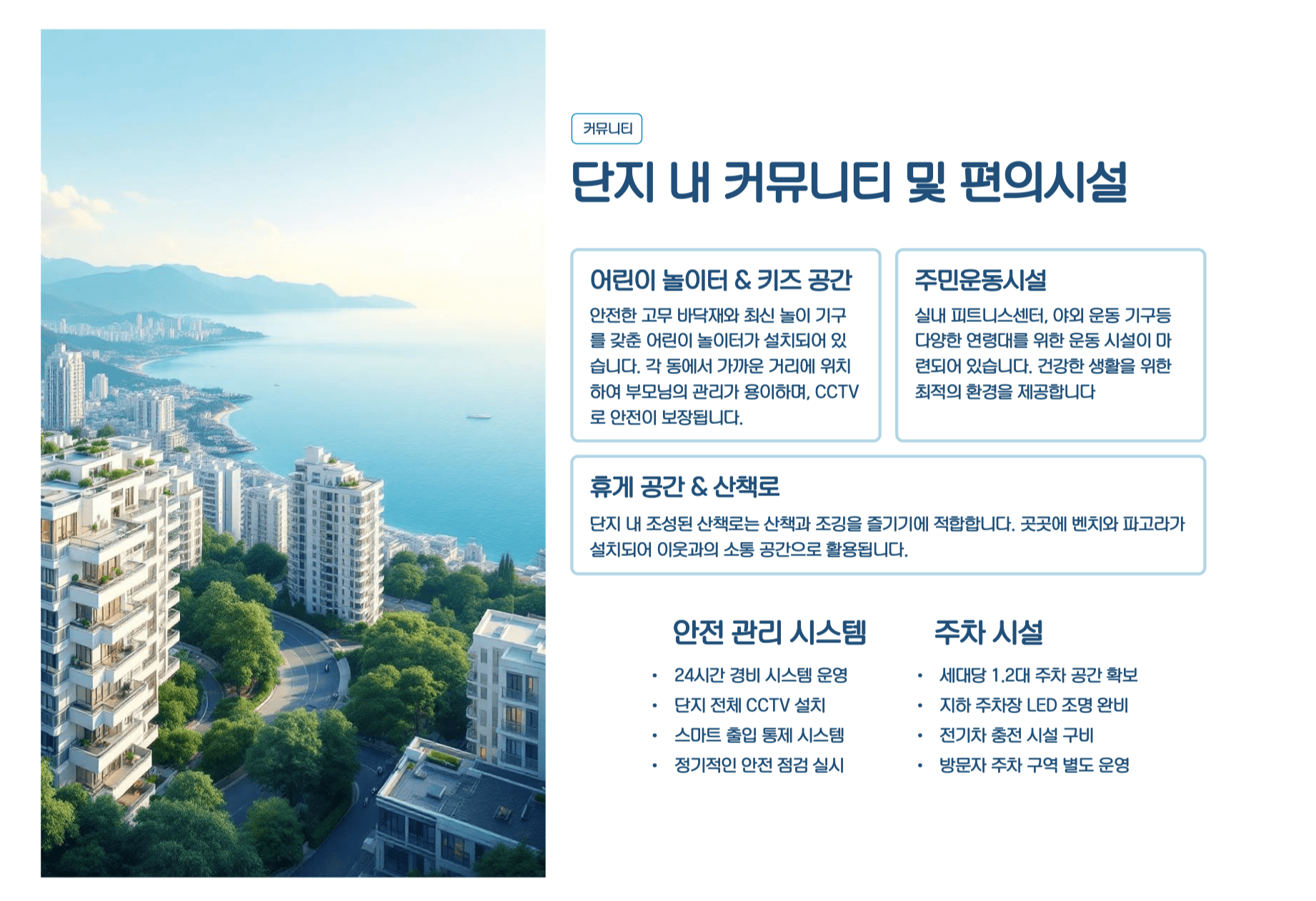 - 단지 특징: 2015년 준공 후 임대에서 분양 전환 시작, 남향 위주 배치 및 넓은 주차 공간