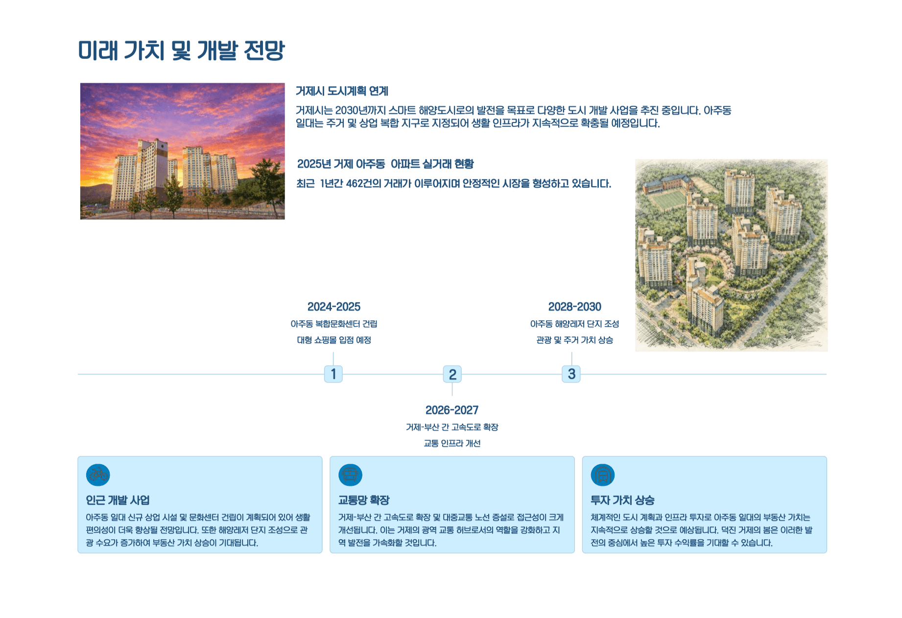 - 미래 가치: 거제 KTX 착공 예정 및 조선업 호황에 따른 인구 유입 기대