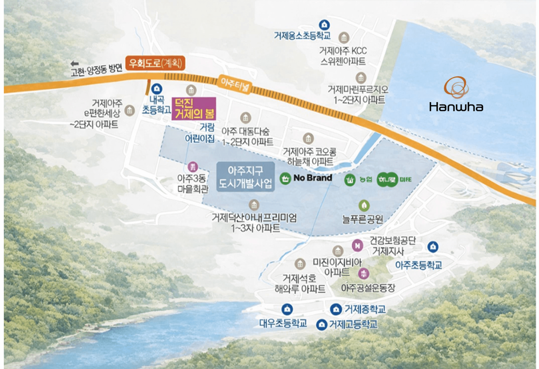 - 위치 및 규모: 경남 거제시 아주동 1396번지, 총 417세대 (7개동, 지상 18층)