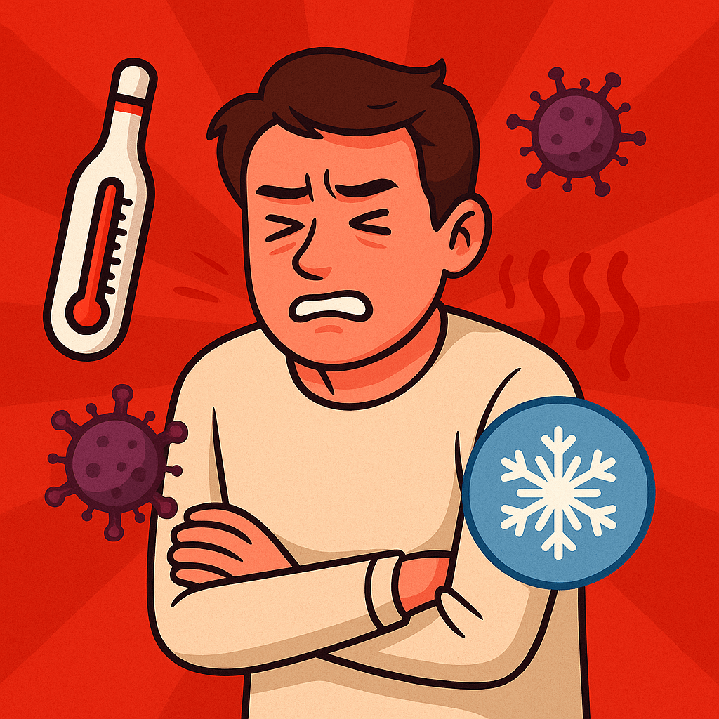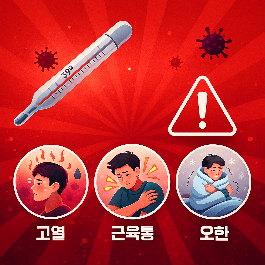 - 고열 + 오한 + 근육통 → 감기보다 강한 전신 증상 증상
