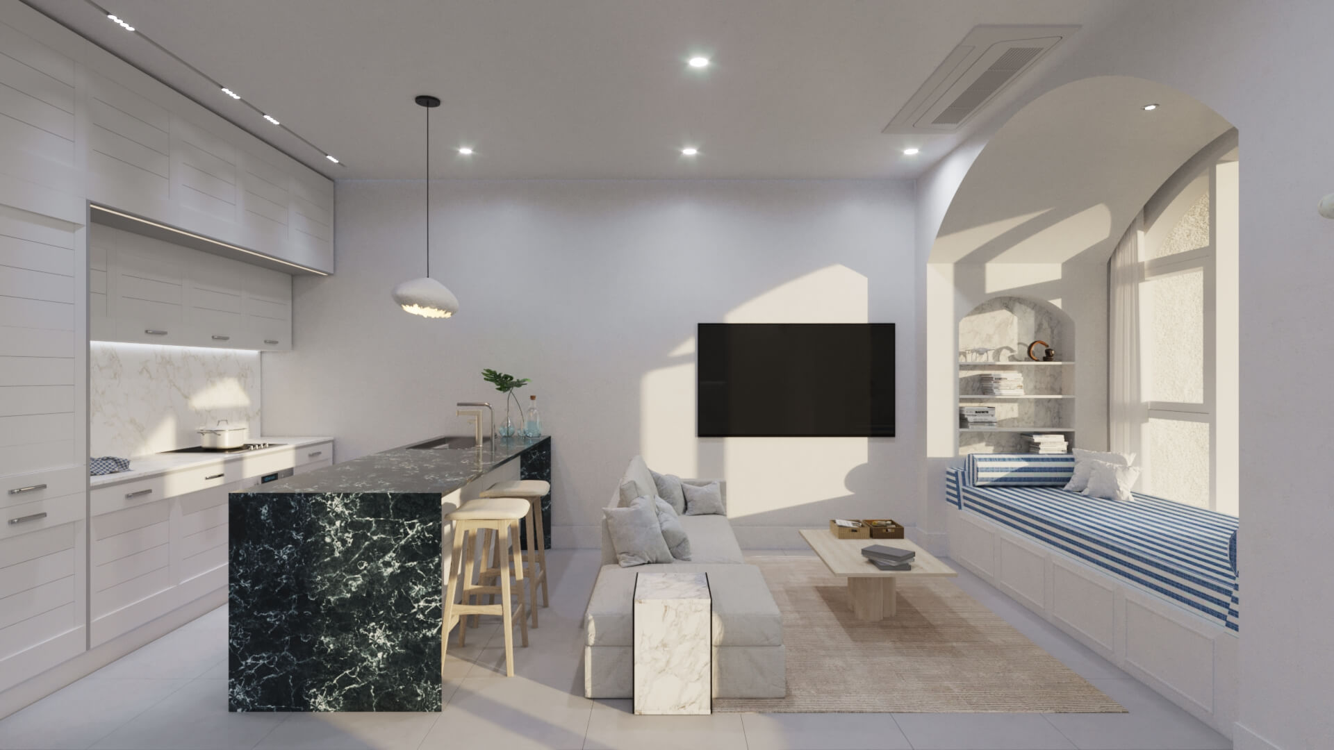 또한 ‘레이어드홈’ 컨셉이 적용되어 실용성과 트렌디한 인테리어를 동시에 제공합니다. 주방은 11자형 구조로 설계되어 아일랜드 테이블을 포함해 효율적인 공간 활용을 가능하게 하며, 약 7.3m에 달하는 광폭 창호와 창가 좌석이 추가되어 개방감과 편안한 휴식 공간을 제공합니다.