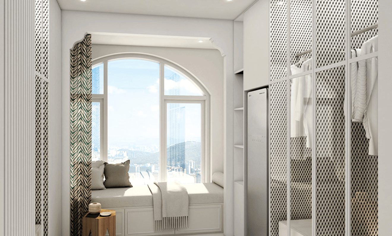 특히 드레스룸에는 세탁기와 스타일러를 함께 배치할 수 있도록 동선이 효율적으로 구성되어, 실제 생활의 편리함까지 고려했습니다.