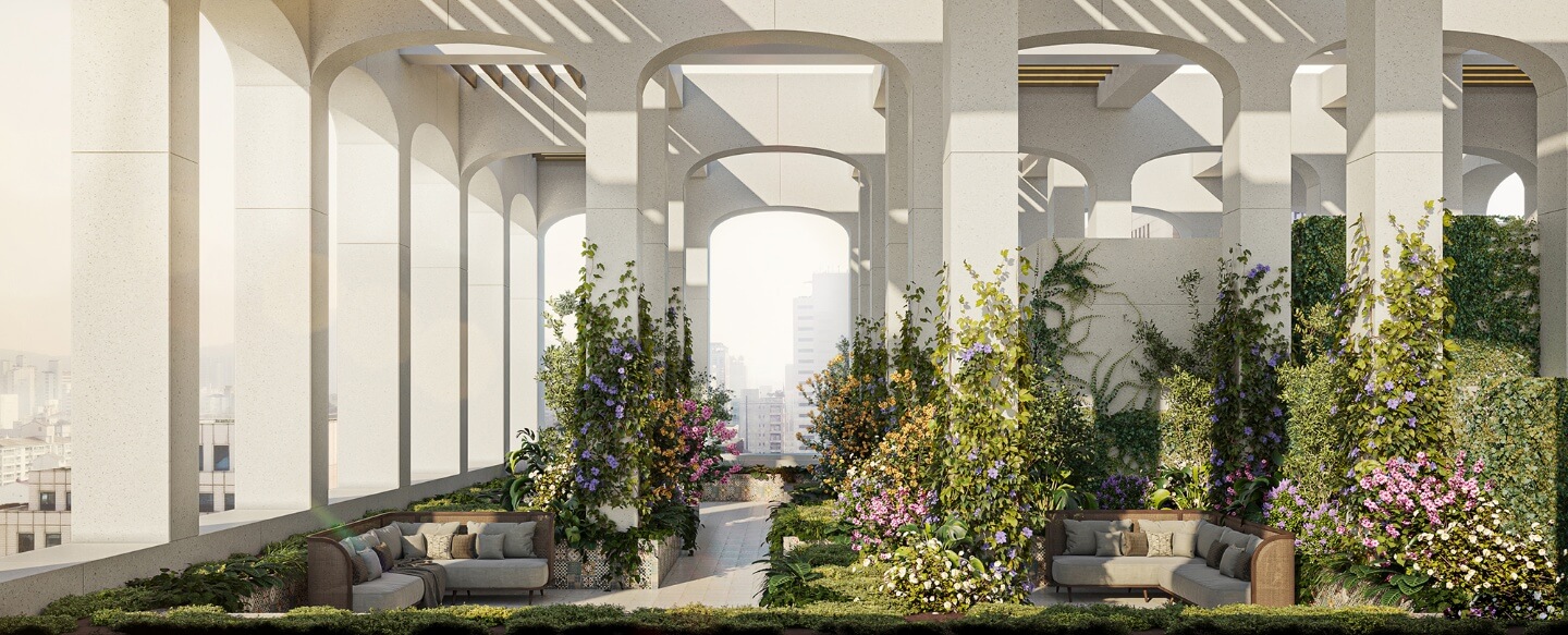 짝수층에는 아치형 패턴을 적용해 고급스러운 외관을 연출했고, 홀수층에는 테라스형 유닛을 배치해 입체감과 개방감을 극대화했습니다.