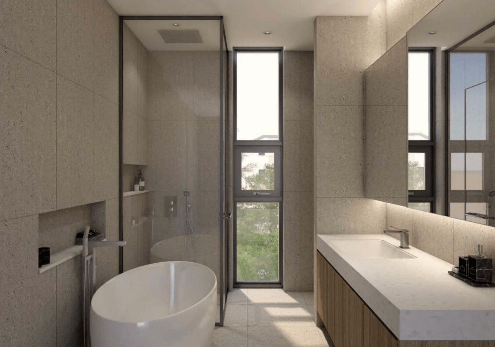 건축 자재들은 최고급 브랜드로 주방은 Bulthaup(독일) 제품과 고급주택 선정기준 중 하나인 이건창호 로이3중유리(43mm)가 적용됐으며, 바닥재 타일은 스페인산 PORCELANOSA 타일이며 빌트인 dacor 카텐차 냉동, 냉장고이며 와인셀러 및 컴팩트 오븐도 기본으로 제공됩니다.