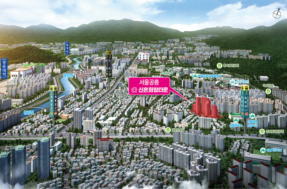 - 서울공릉 신혼희망타운은 지하철 6호선 화랑대역에서 300m 거리에 위치하며 태릉입구역(6호선·7호선) 역시 도보 10분 거리로 더블역세권입니다.