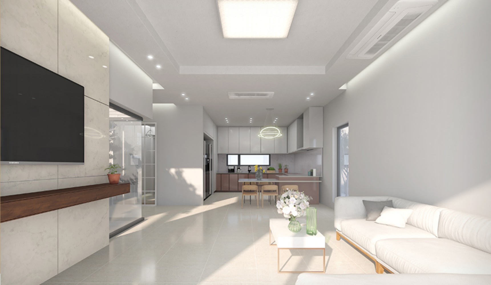 5m 층고로 더 밝고 넓어 보이는 가족실에서는 넓은 정원이 한 눈에 들어옵니다.