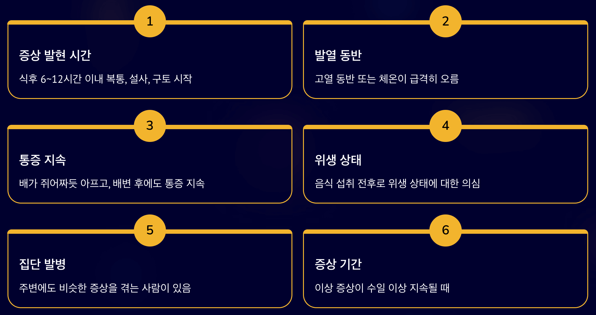 정리하자면, 이런 신호가 있다면 식중독을 의심해야 합니다: