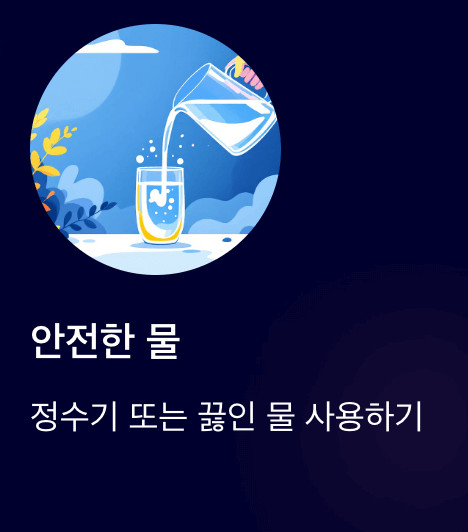 - 물은 정수기 또는 끓인 물 사용