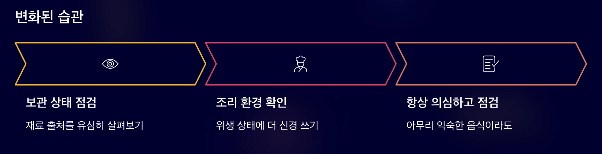 ✔️ 음식 섭취 전후로 위생 상태에 대한 의심