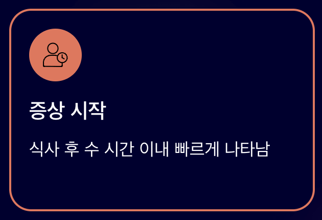 ✔️ 식후 6~12시간 이내 복통, 설사, 구토 시작