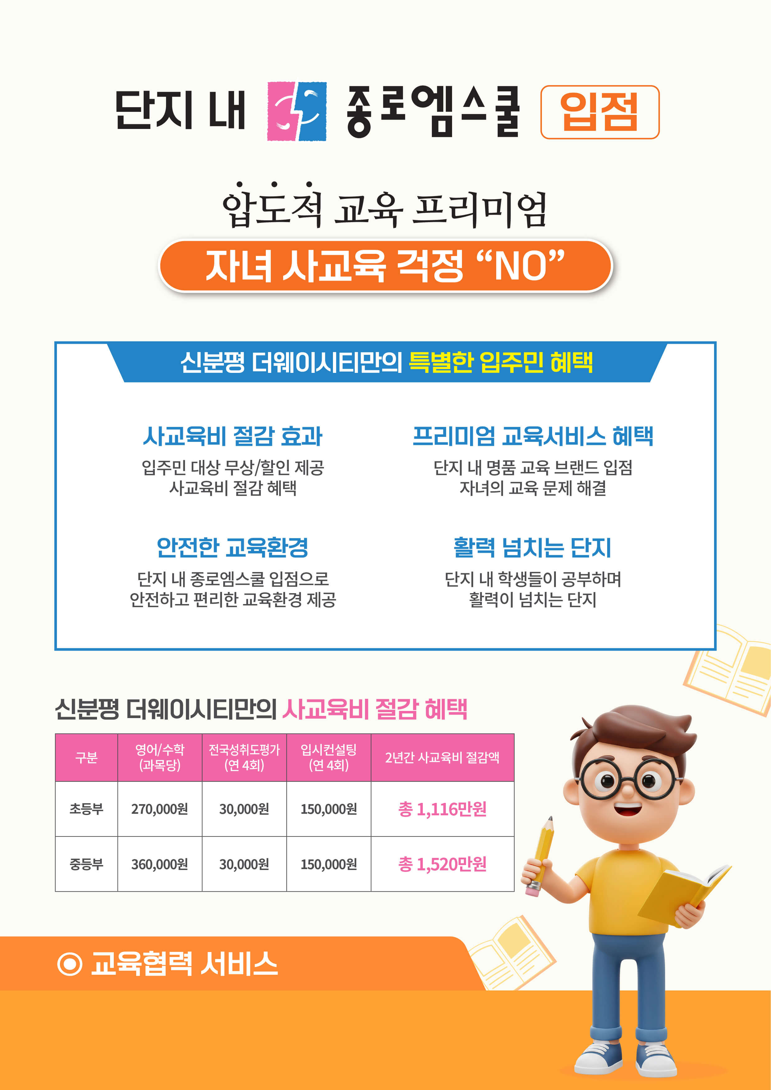 교육 여건도 우수합니다. 지구 내 초등학교 부지가 포함되어 향후 도보 통학이 가능하며, 반경 2km 내에 남성초·중학교와 충북고등학교가 위치합니다. 또한 단지 내 상가층에는 학원가가 입점을 앞두고 있어 자녀 교육 환경이 강화될 전망입니다.