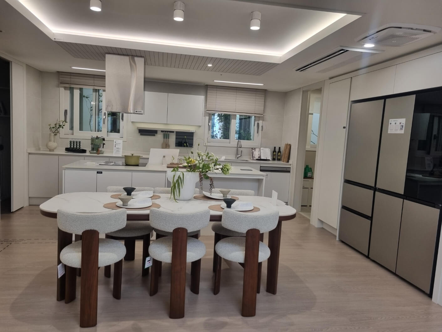 집을 오래 살다 보면 가장 크게 체감하는 부분은 바로 내부 마감재입니다. 이 단지는 이탈리아산 포셀린타일 아트월과 우물천장, 강마루 등을 적용해 거실 공간을 품격 있게 꾸몄습니다. 주방에는 엔지니어드 스톤 상판과 하이브리드 쿡탑, 음식물 탈수기 같은 실용적인 옵션이 포함되어 생활 편의성을 한층 높였습니다.