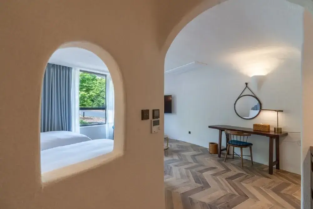 - 디럭스룸: 넓은 창을 통해 숲속 전망을 감상할 수 있는 기본 객실