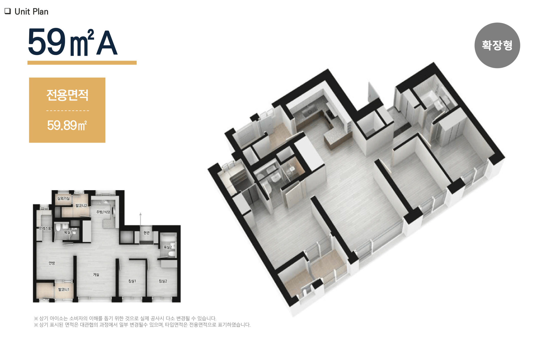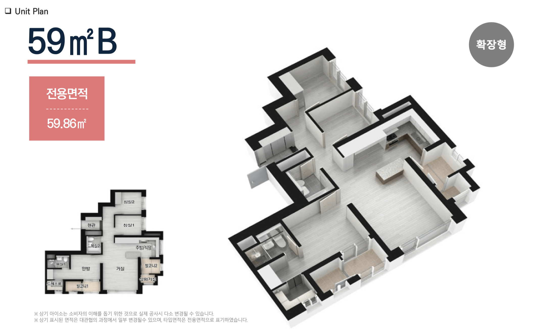59A형 기준으로 보면 넓은 세탁공간, 드레스룸, 붙박이장, 현관 펜트리 등 수납 기능도 강화되어 공간 활용에 탁월하며, 실용성과 심미성을 모두 고려한 설계로 실수요자의 만족도가 높을 것으로 예상됩니다.
