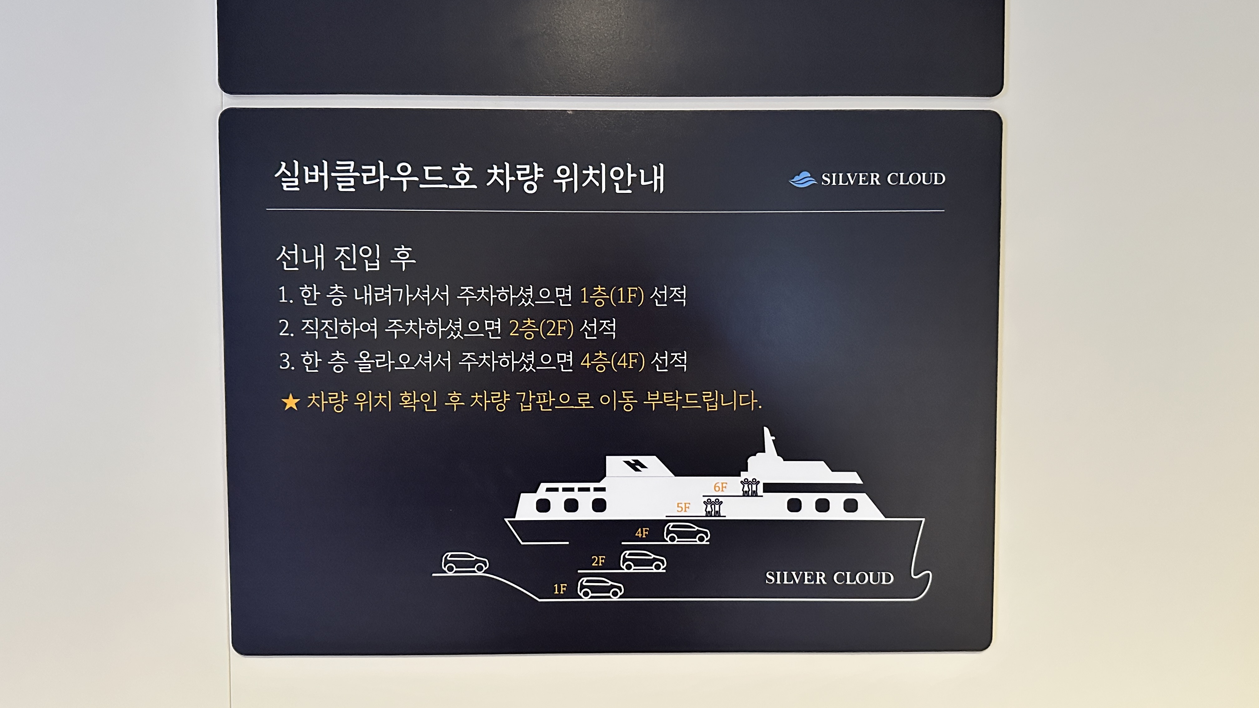 제주항 도착 20분 전 차량 운전자에게 방송이 나오며, 천천히 차량으로 이동 가능.