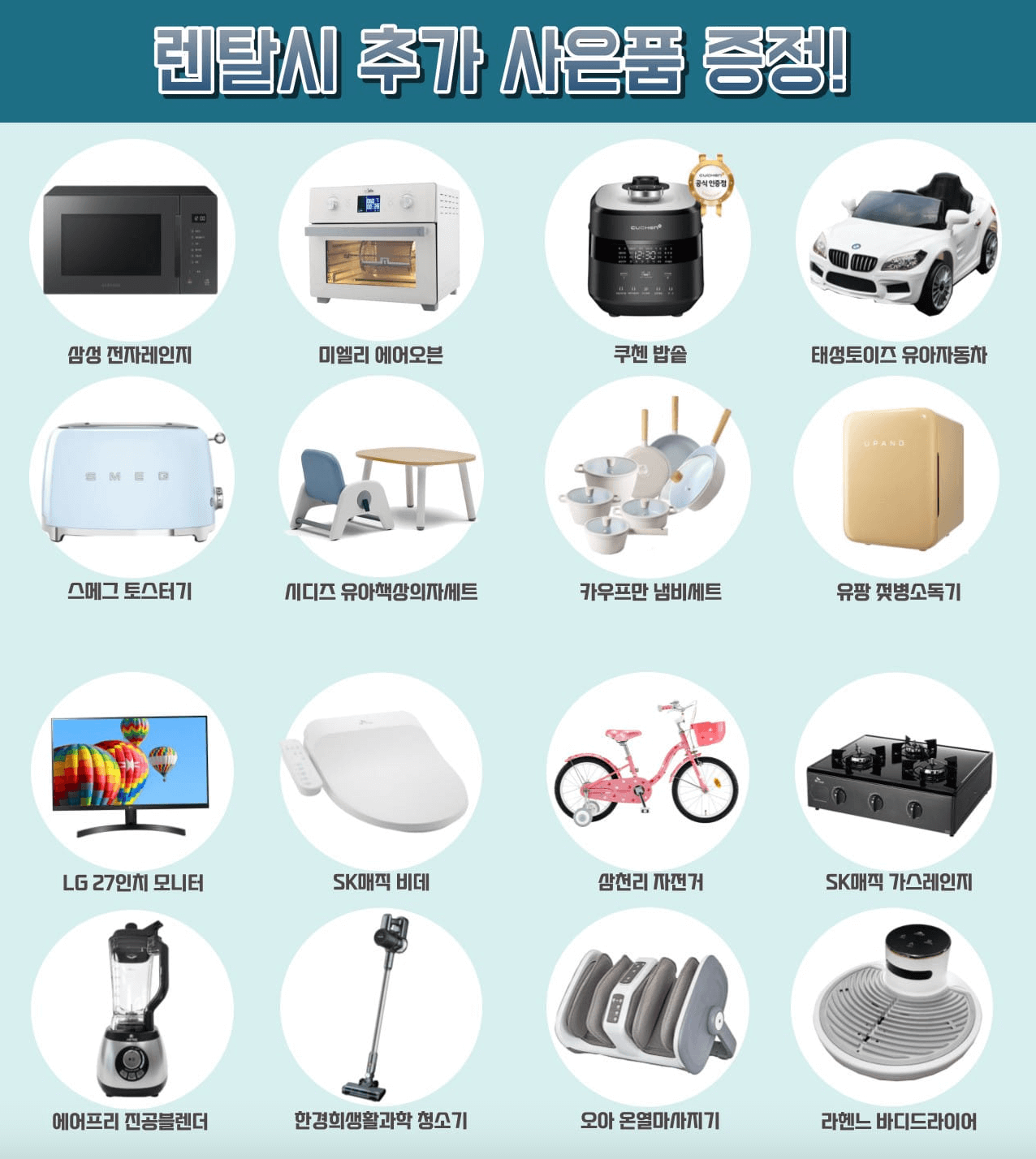 - 최고급 사은품 증정: 정수기를 렌탈하면 다양한 사은품이 증정되며, 필요에 따라 고를 수 있는 옵션도 제공됩니다.