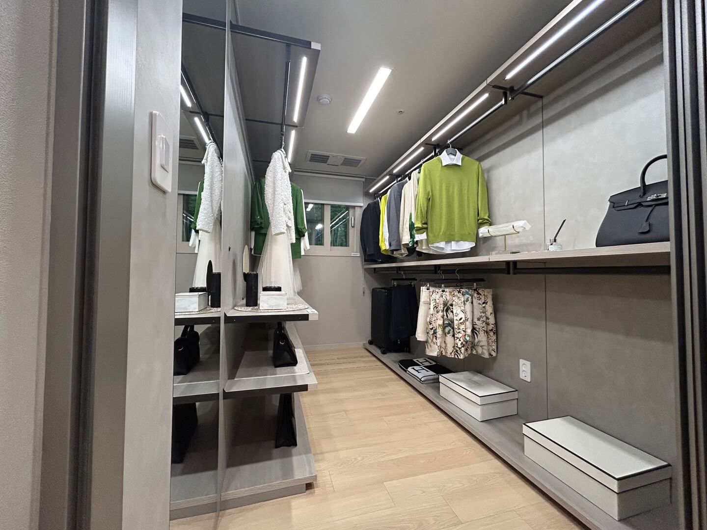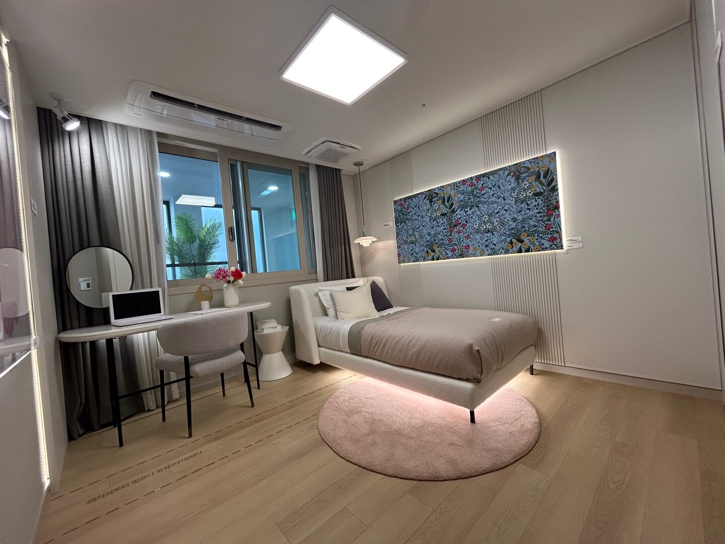 위파크 제주의 모든 세대는 4베이 판상형 구조로 설계되어 개방감이 뛰어나며, 맞통풍이 유리하도록 구조가 배치되었습니다. 모든 세대에는 대형 드레스룸과 팬트리 등 넉넉한 수납공간이 제공되며, 알파룸을 포함해 다양한 공간 활용이 가능합니다.