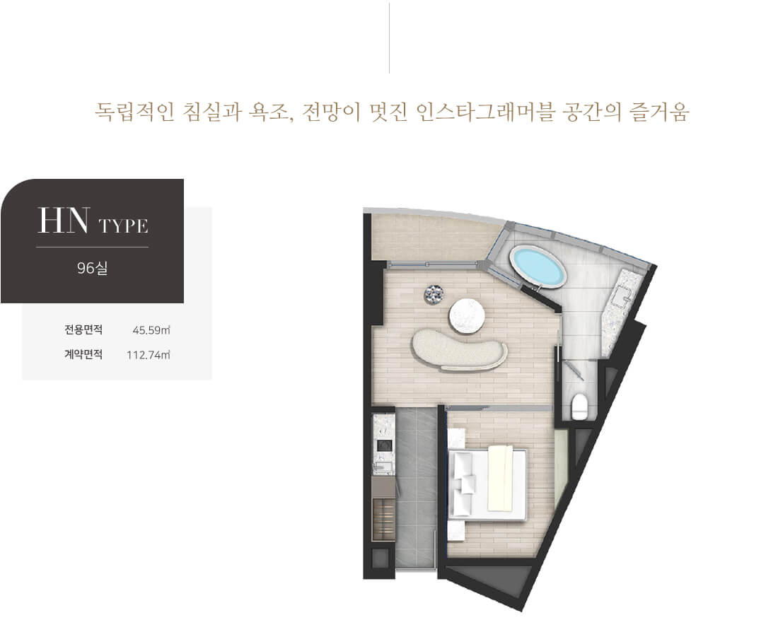 이외에도 객실 내부는 천장고 2.7m로 개방감을 극대화했으며, 대부분 프리미엄 디럭스 타입 이상 (92%)으로 설계해 더욱 높은 만족도를 기대할 수 있습니다.