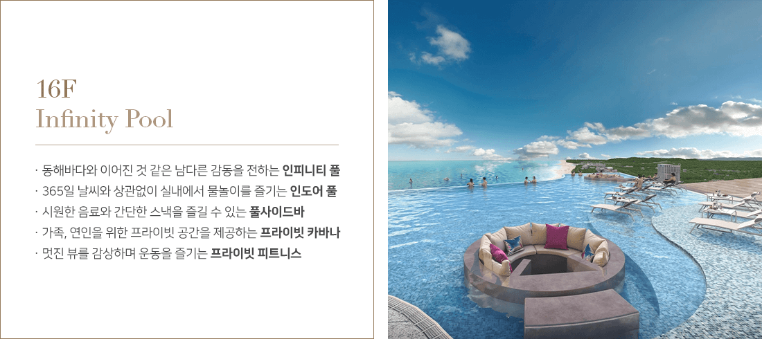 - 야외 인피니티풀 (16층) : 탁 트인 동해를 바라보며 즐기는 럭셔리한 수영
