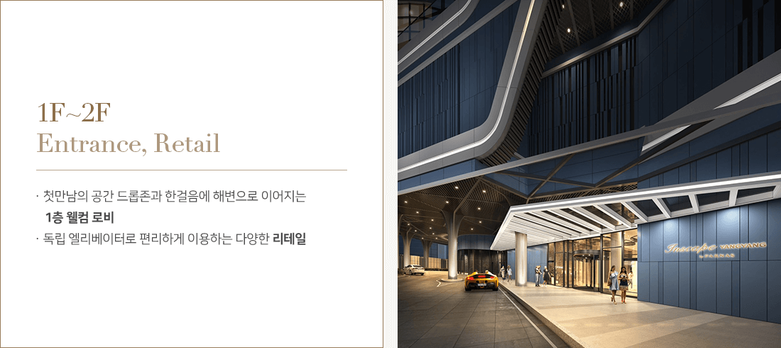 강원도에서 가장 높은 건물로 지어지는 인스케이프 양양은 최고 39층, 174.6m의 높이를 자랑합니다. 일반적인 호텔과 달리 38층에 스카이 로비를 배치해, 호텔에 들어서는 순간부터 동해의 파노라마 전망을 감상할 수 있습니다.