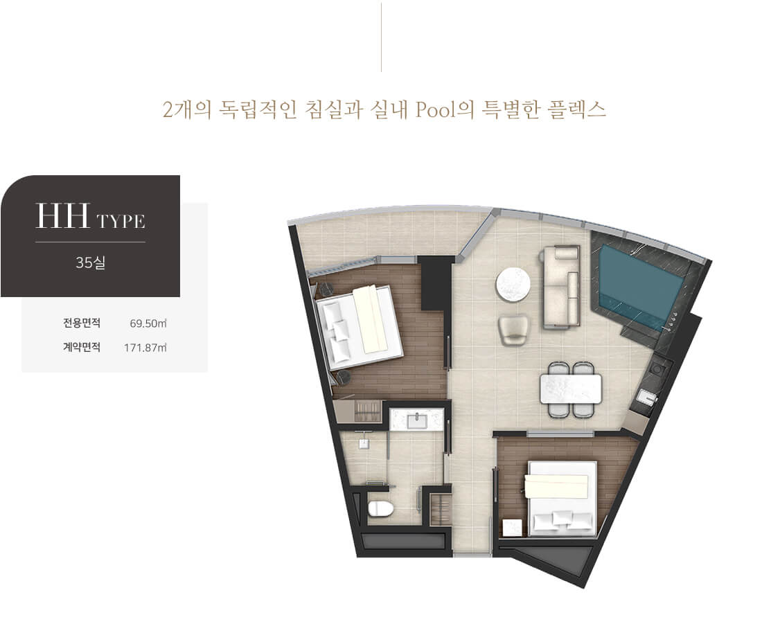 - 프라이빗 피트니스 및 카바나 : 프리미엄 라이프스타일을 위한 개별 공간 제공