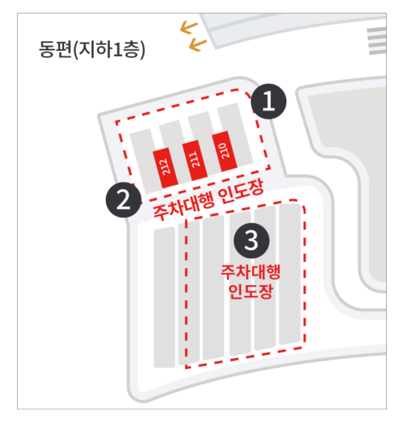 단기주차장 지하 1층 서편에 위치한 주차대행 접수장으로 이동하세요.
