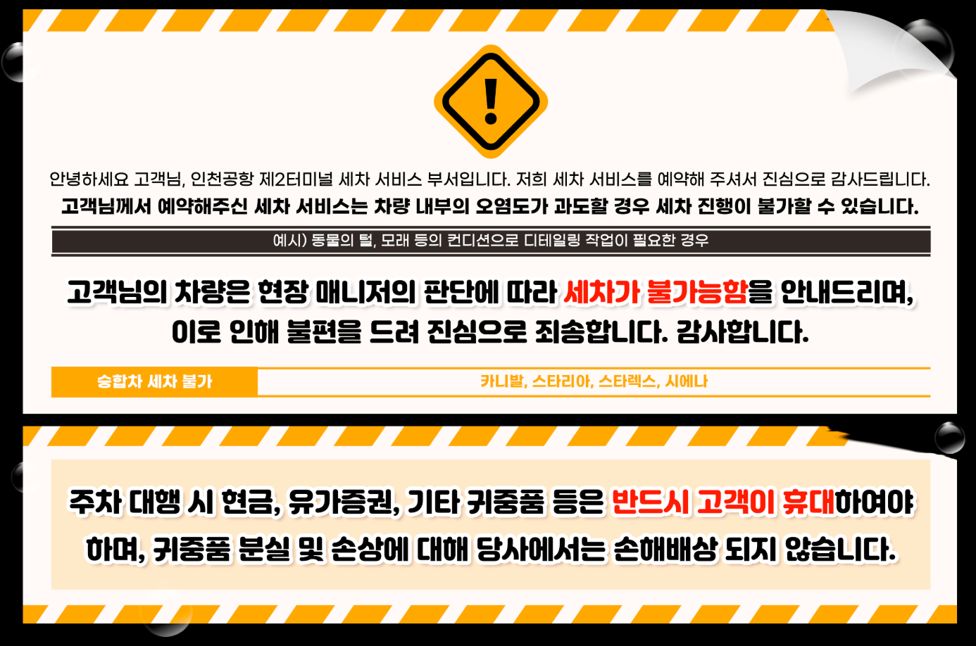 공식 주차대행 서비스는 인천공항공사와 계약된 업체로, 신뢰성이 보장됩니다. 사설 업체 이용 시 발생하는 손실은 공항공사에서 책임지지 않습니다.