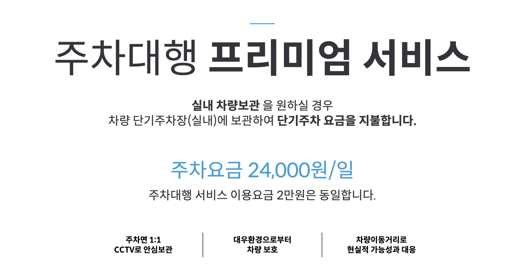 주차대행 서비스 요금 20,000원은 동일하게 적용됩니다.