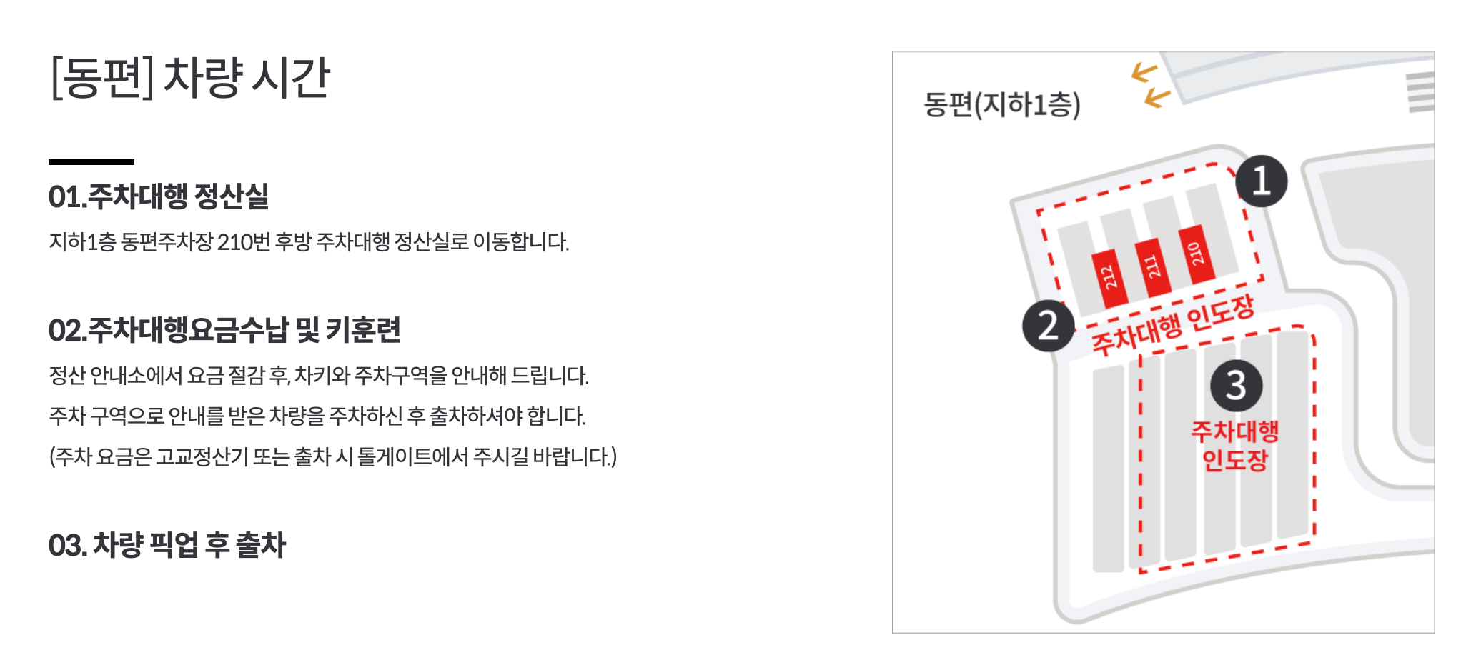 2. 주차대행 접수장 위치 및 운영시간