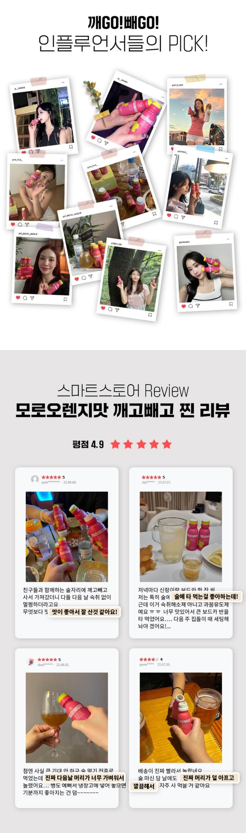 술을 좋아하면서도 숙취와 체지방 케어를 동시에 고민하는 분들을 위해, "깨GO!빼GO!"를 권장합니다. 액상 형태로 편리하게 섭취할 수 있고, 제주 감귤과 한라봉의 맛을 살려 거북한 향이 없어 입맛을 돋우며 숙취를 날려보세요!