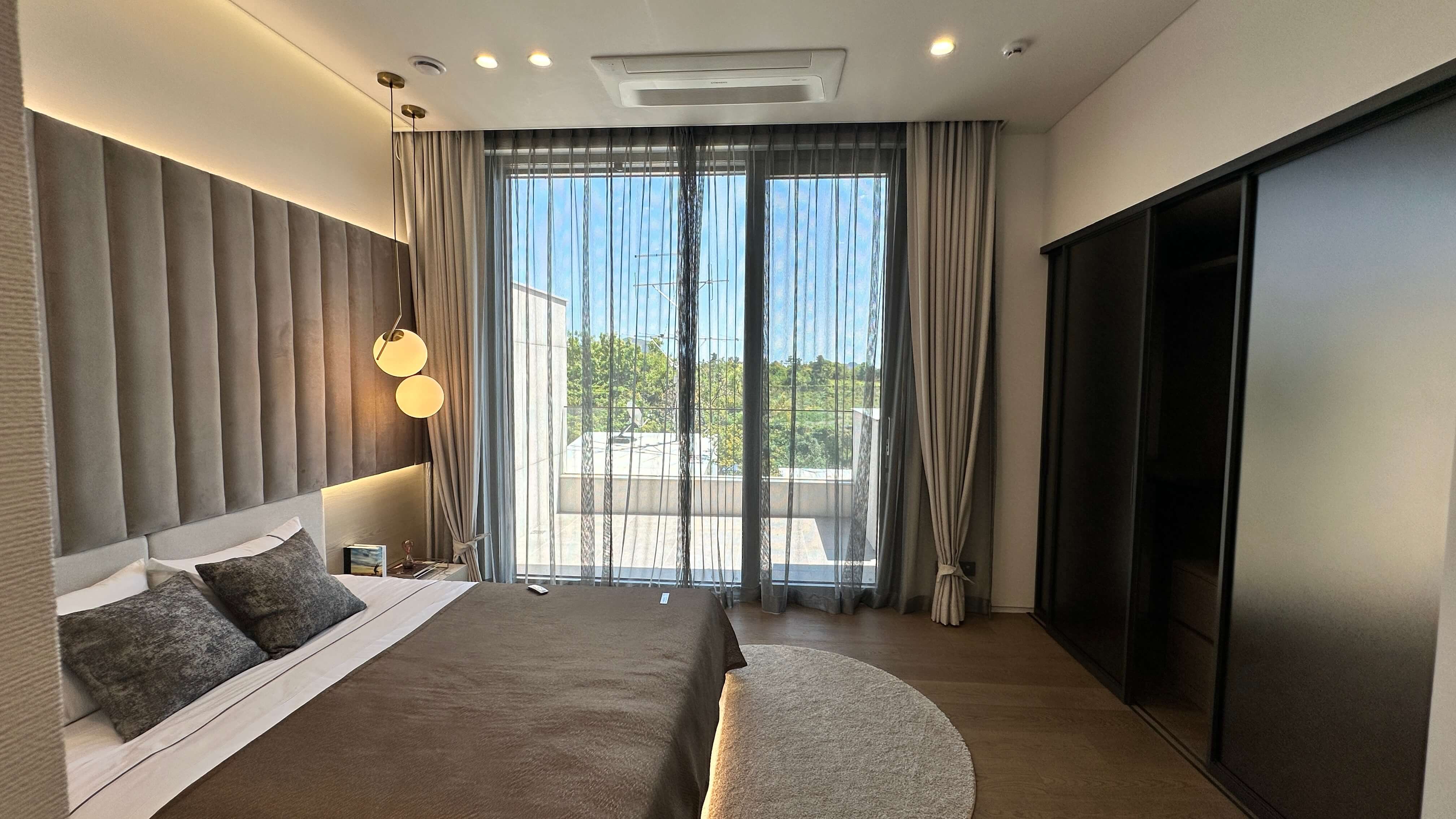 제주포레팰리스의 내부는 고급 마감재를 사용해 완성도 높은 인테리어를 갖추고 있으며, 각 공간마다 개방감이 느껴지도록 설계되었습니다. 특히 거실과 주방은 넓고 쾌적한 공간으로 설계되어 있으며, 대형 창문을 통해 들어오는 자연 채광이 포근한 분위기를 더합니다.