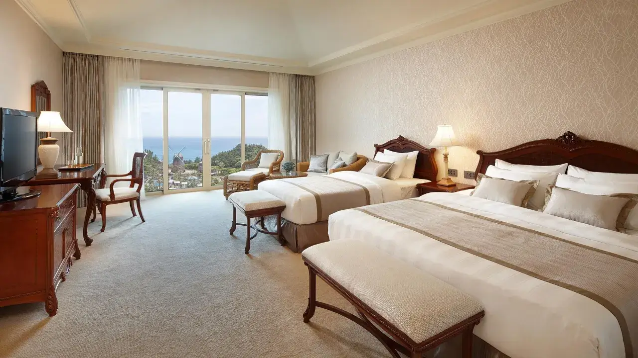 호텔의 500개 객실은 제주도의 아름다운 바다 전망을 감상할 수 있도록 설계되었습니다. 모든 객실은 모던하면서도 세련된 인테리어로 꾸며져 있으며, 쾌적한 숙박 환경을 제공합니다.