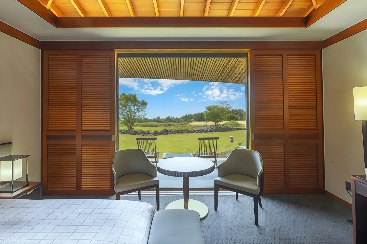 호텔은 총 26개의 객실을 보유하고 있으며, 모든 객실은 제주 자연과 어우러지는 디자인으로 설계되었습니다. 넓은 창문을 통해 보이는 한 폭의 그림 같은 풍경은 방문객들에게 잊지 못할 감동을 선사합니다. 객실에는 고급 침구, 오리/거위털 이불, 냉장고, LCD TV 등이 갖춰져 있으며, 전용 파티오를 통해 제주 풍경을 감상할 수 있습니다. 또한 무료 Wi-Fi와 케이블 채널을 제공하여 편안한 휴식을 돕습니다.