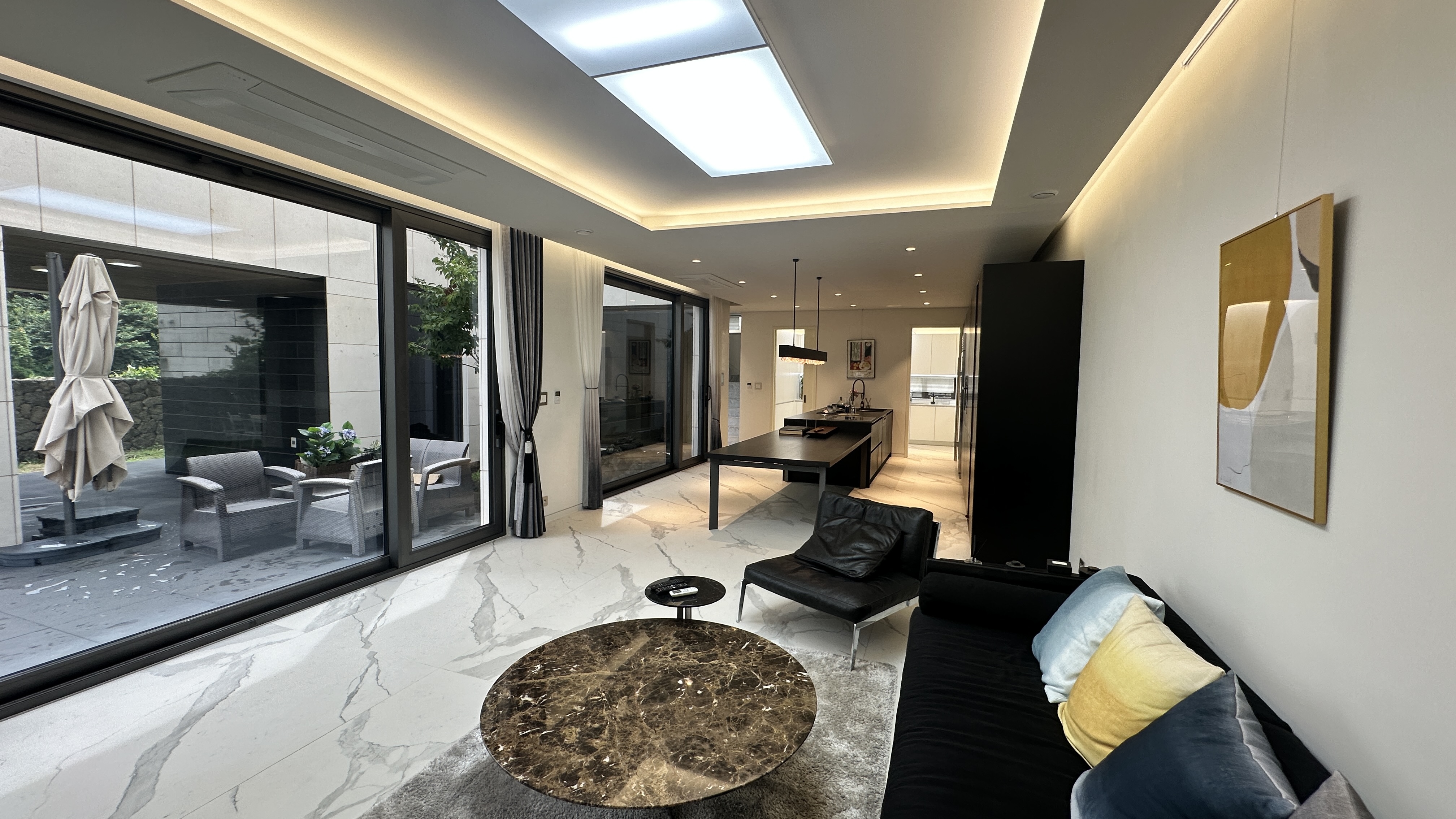 제주 포스힐 프레스티지의 인테리어는 마치 갤러리를 옮겨 놓은 듯한 감각을 자아냅니다. 자연광을 최대한 활용한 설계와 차별화된 공간 구성은 첫인상부터 예술적인 감각을 더합니다. 공간감을 극대화한 주방 라인과 인테리어는 초대형 주거공간에서만 느낄 수 있는 개방감과 여유를 선사합니다.