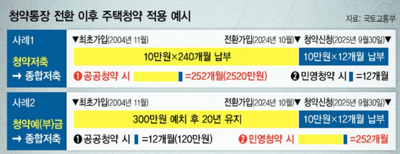 유의점: 통장을 전환하면 민영주택 청약 실적은 신규 납입분부터 인정됩니다. 기존 납입 기간이 긴 경우 공공주택 청약에는 유리하지만, 민영주택 청약을 고려한다면 전환 후 납입을 꾸준히 해야 합니다.