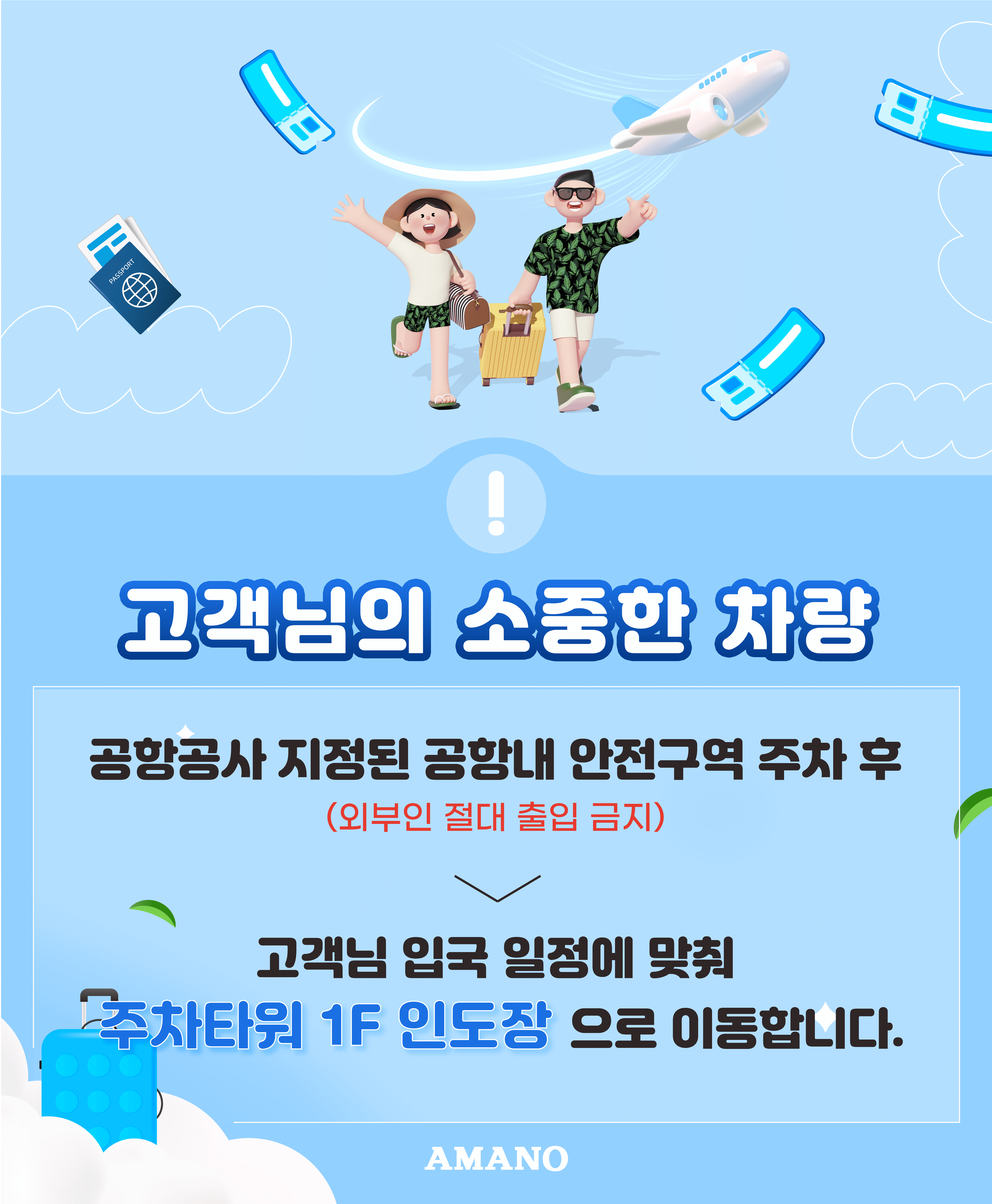 청주공항 주차대행은 탑승객의 주차 시간을 절약하고, 안전하고 편리한 차량 보관을 제공하는 서비스입니다. 청주공항의 공식 주차대행 업체인 아마노코리아는 신뢰성과 효율성을 바탕으로 공항 이용객들에게 최적의 주차 경험을 제공합니다.