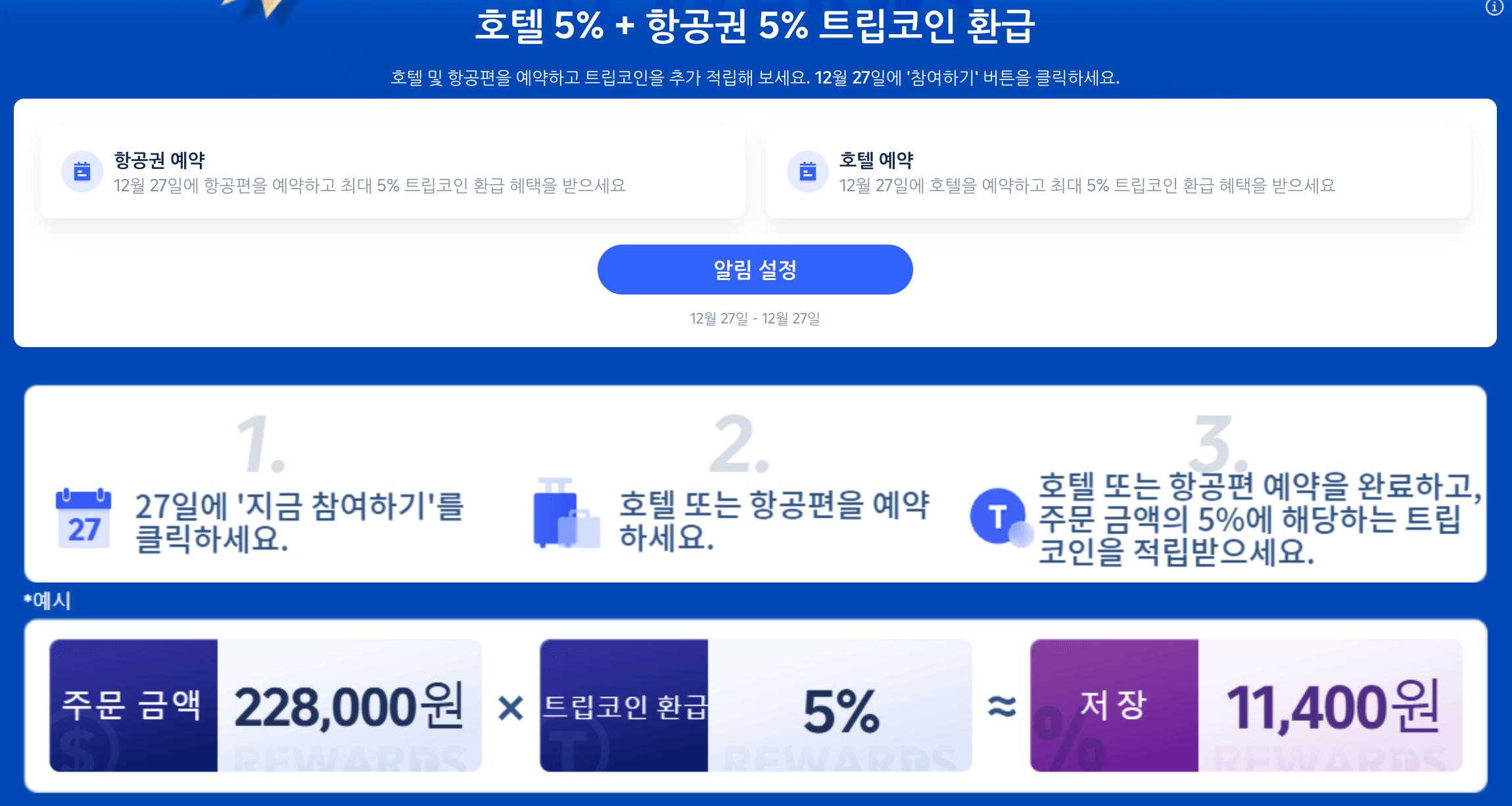 트립닷컴은 주기적으로 여행 지원금 이벤트를 진행합니다. 최근에는 최대 300만 원의 여행 지원금을 제공하며, 이벤트 참여 시 트립코인을 적립할 수 있습니다.