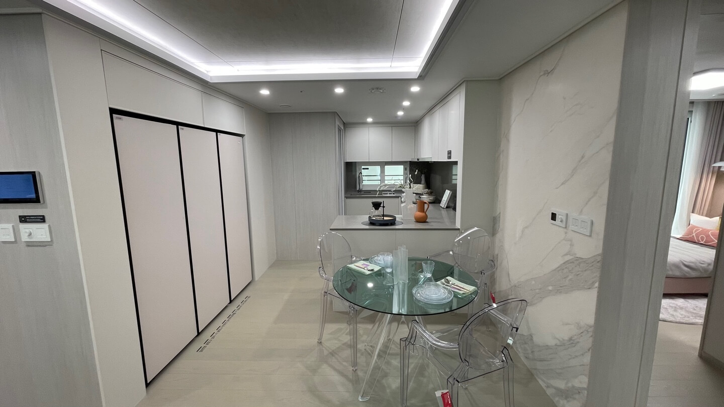 - 와이드 우물천장과 아트월로 고급스러운 분위기 연출