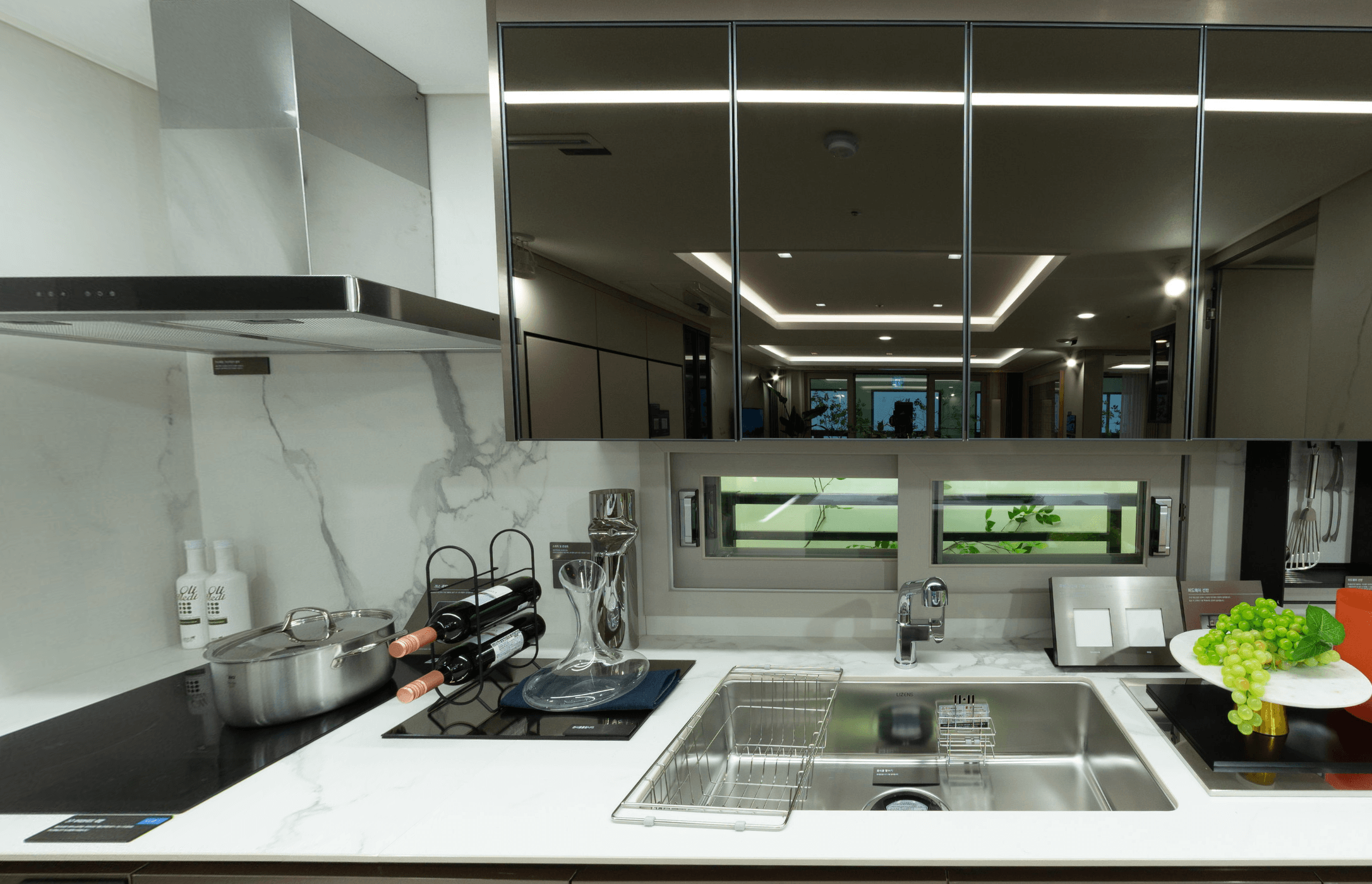 전 세대에는 독일산 시스템 창호가 적용되어 단열성과 기밀성을 극대화했습니다. 냉난방 효율이 뛰어나 에너지 절감 효과를 기대할 수 있으며, 음식물쓰레기 자동 집하시설, 스마트 환기 시스템, 자동 루버 제어장치 등 첨단 기술이 일상 속 편리함을 더합니다.